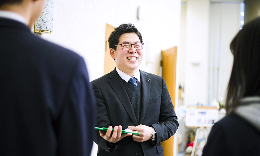 教育実習で、生徒に教える面白さを実感。また、塾のアルバイトを通じて出会ったのは、「先生に会えるから塾に来るのが楽しい」と言ってくれる子どもたちでした。教育とは何なのか、悩みながら就職活動をしている時に出会ったのが、ウィザスでした。会社説明会では、理念の説明に熱い想いが込められていることを感じました。他の会社とは明らかに違う。本当に生徒を向いた教育ができるのはここだと思いました。